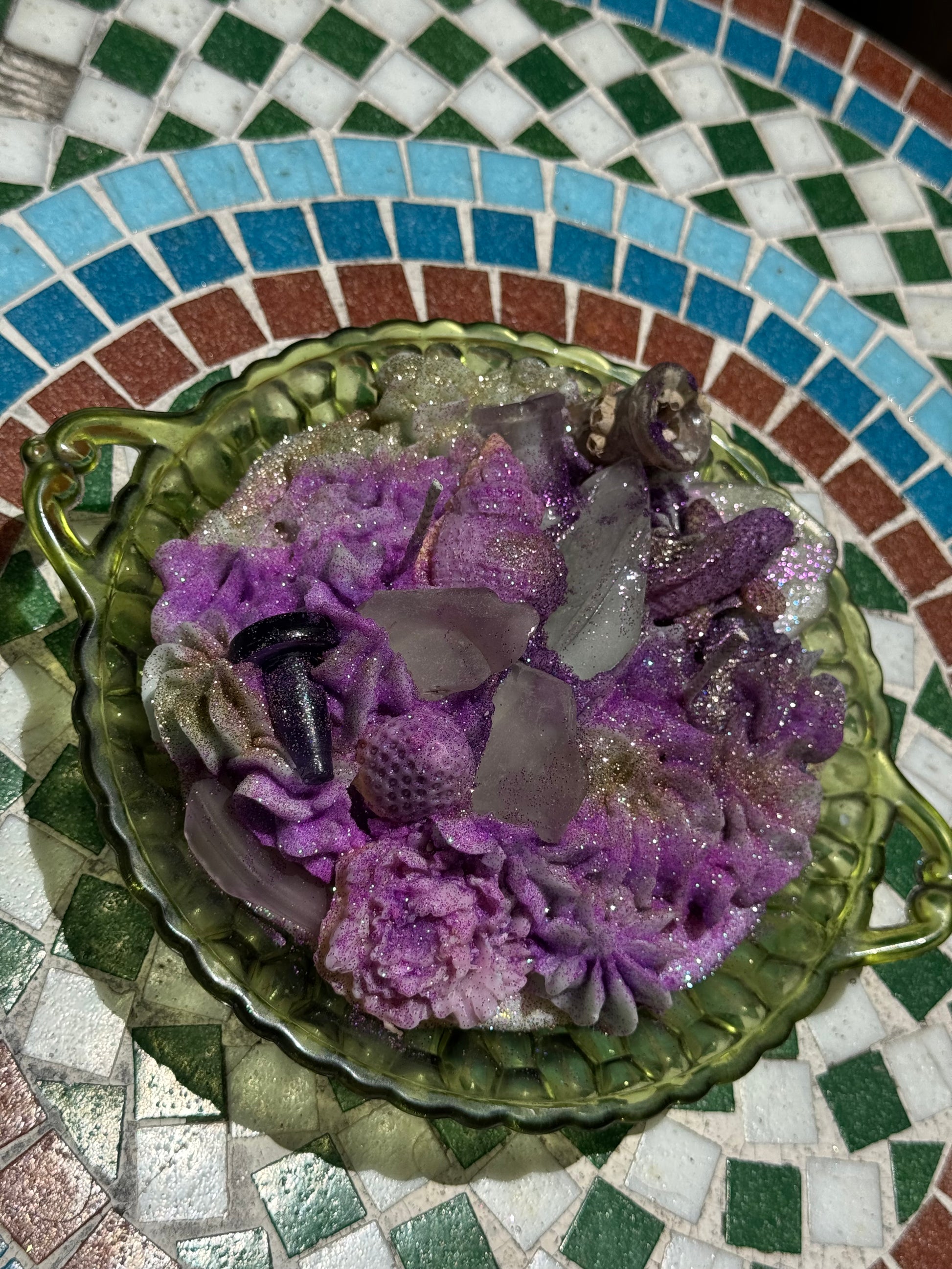 DARK Purple Stopper & Purple Seaglass Medley- Beach Sage Mint base with Plum Punch Whip