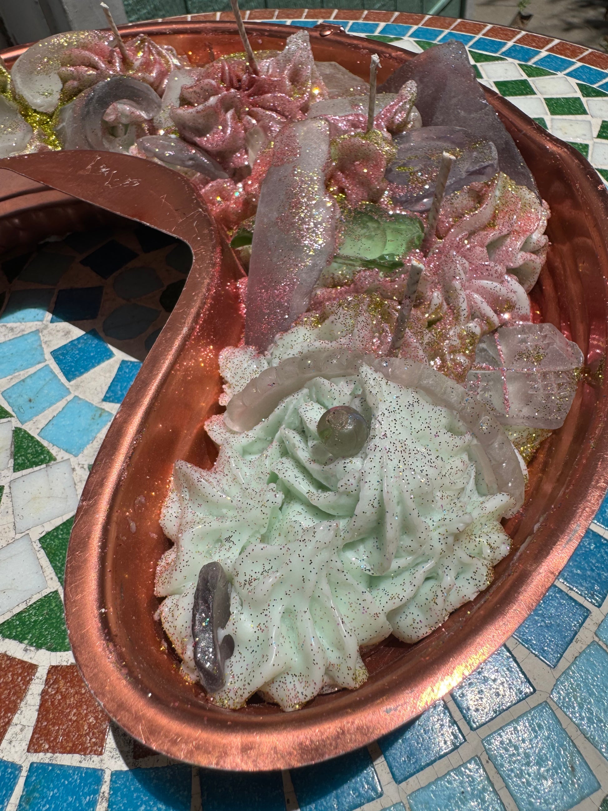 Purple Seaglass Paradise- German Swirl Eye- Beach Sage Mint base with Plum Punch Whip